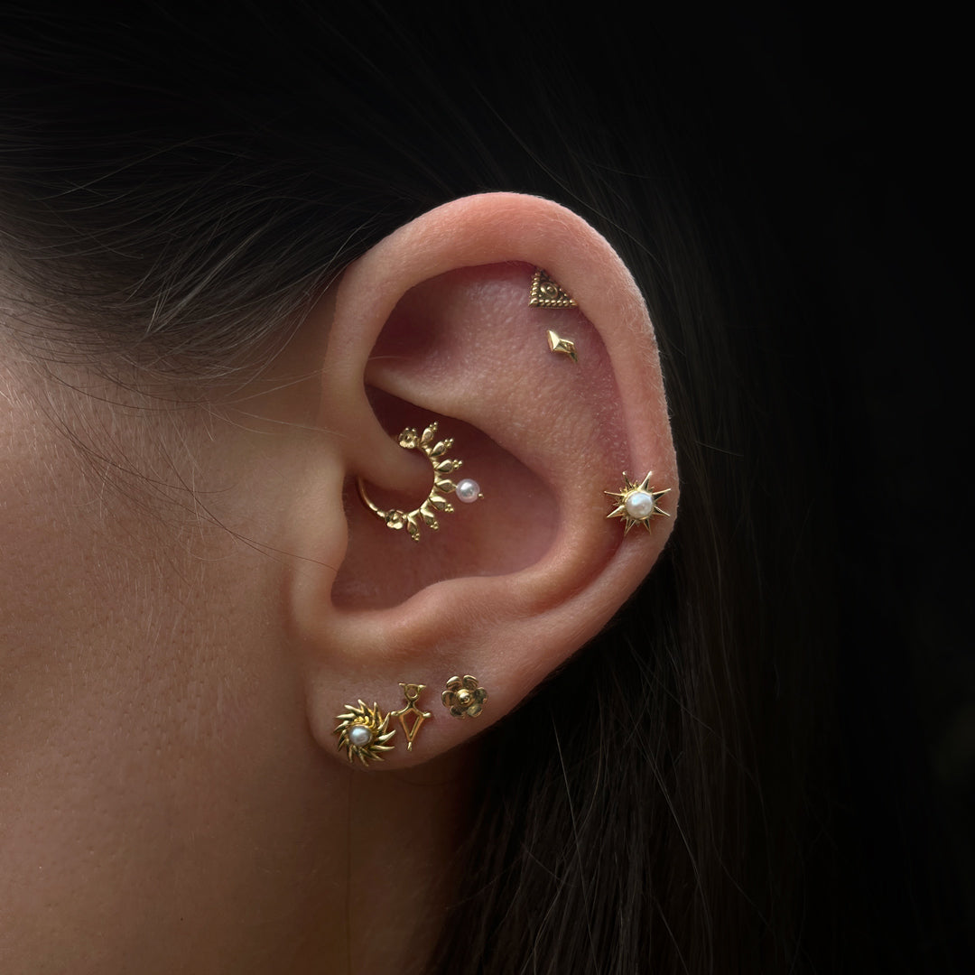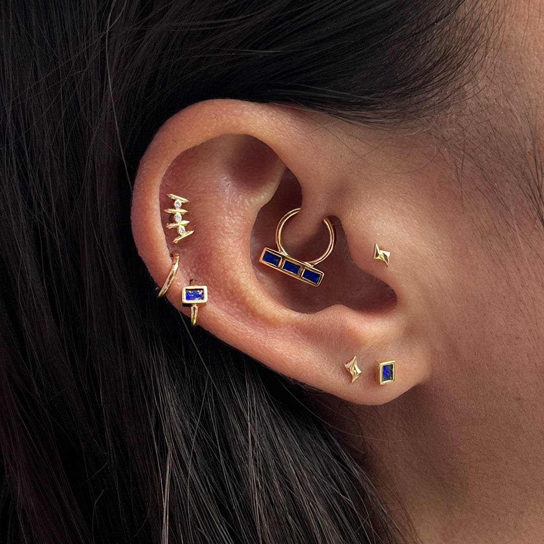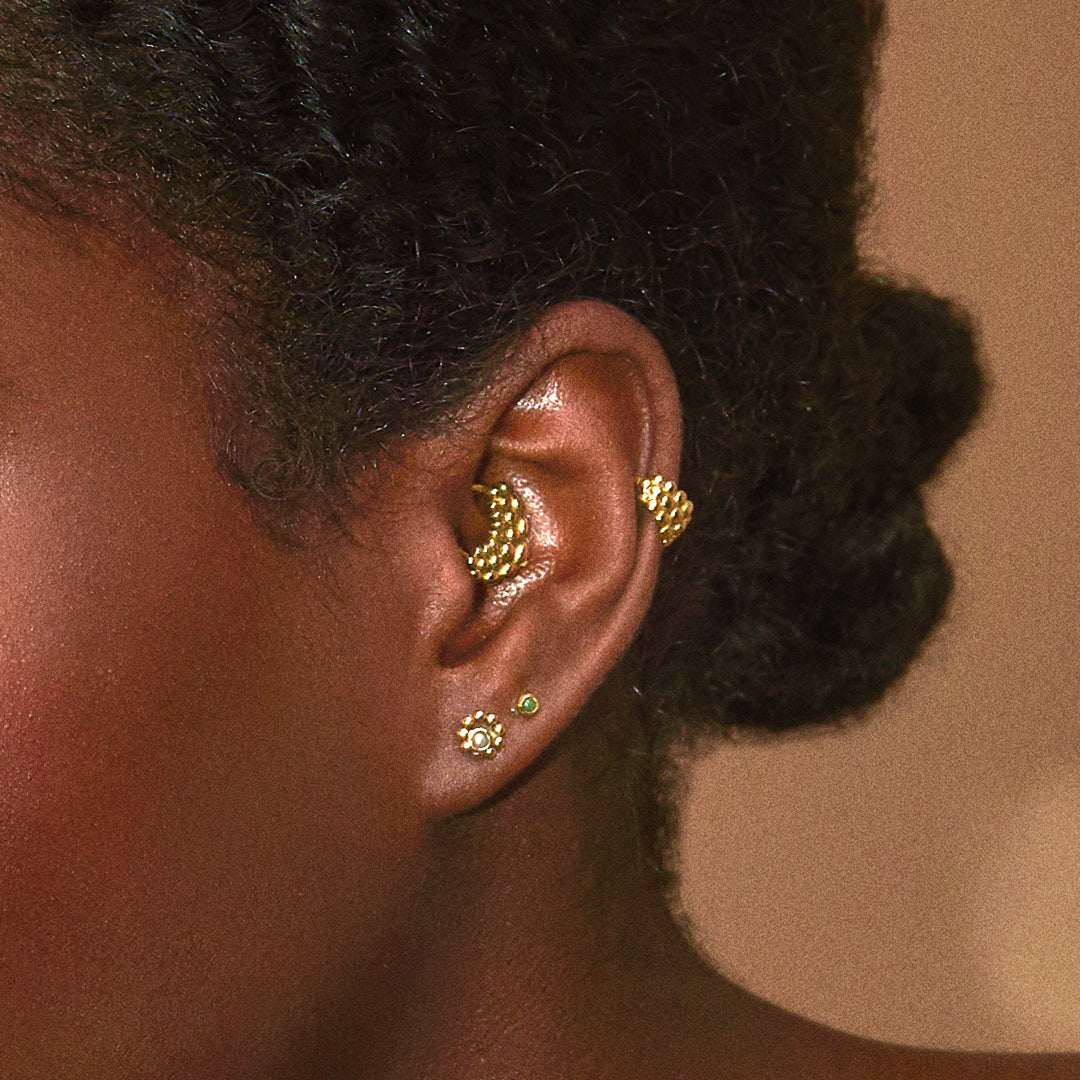 Find inspiration and style with our different ear compositions. Click on the dot to see the jewelry of the look.